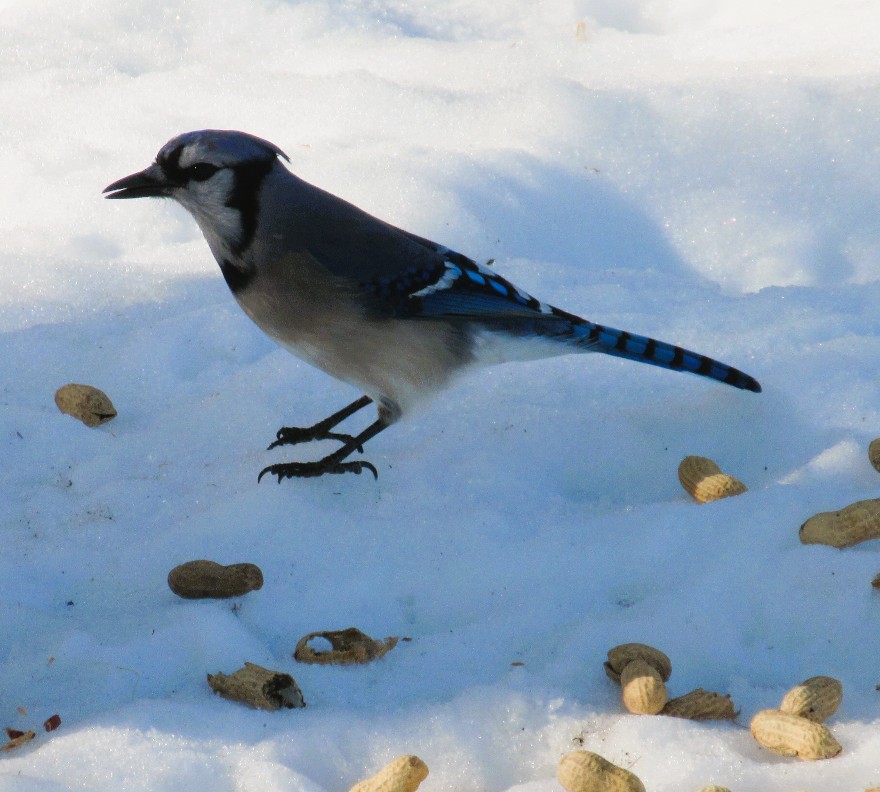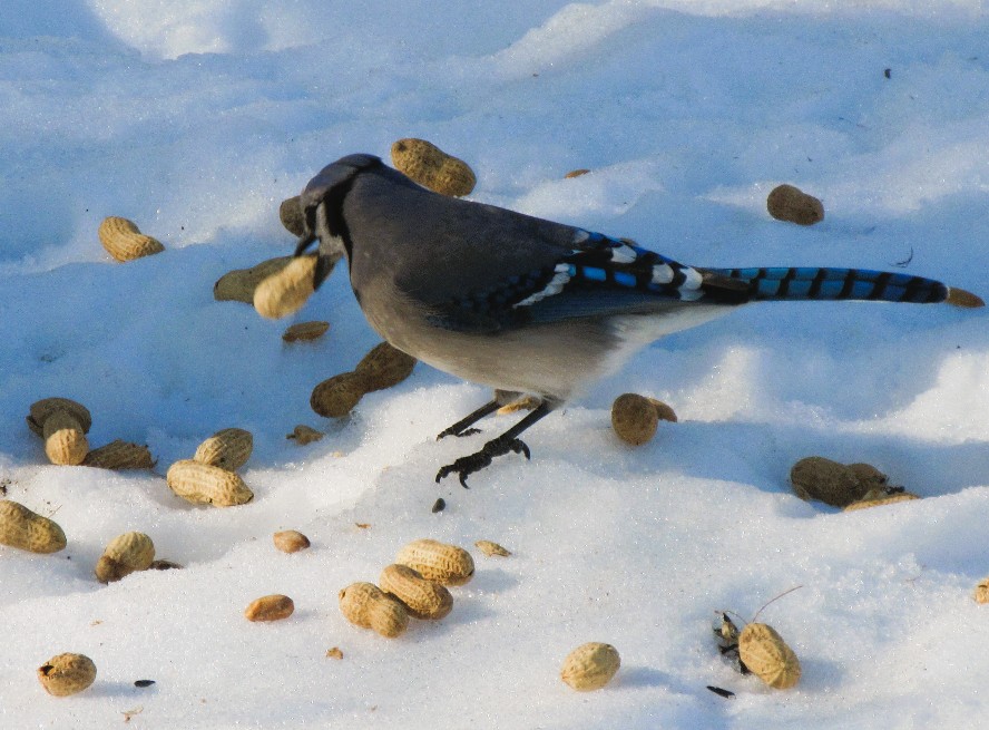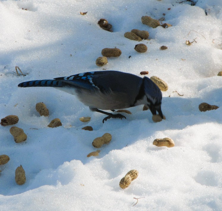 There were not as many squirrels as in past years, so as I ambled along, leaving peanuts in the usual spots, my second trip around, I was happy to see most of the peanuts I had left an hour before were now gone. Of course, it might have been the piggy Blue Jays. They are famous for stealing in-shell peanuts from right under a squirrel’s nose. I found a few Jays busying themselves, shaking and/or tossing the peanuts into the air to test their weight, then flying off with a peanut to add to their cache of treats.