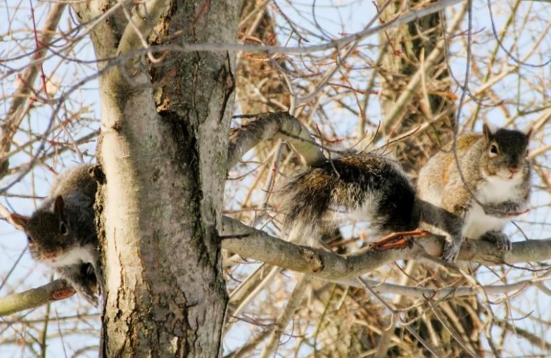 A few minutes later, two of the three squirrels scampered back up the tree.