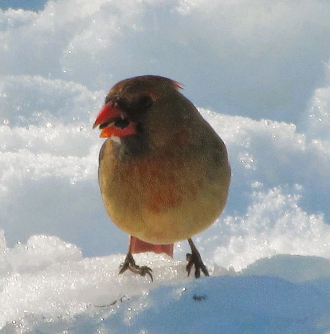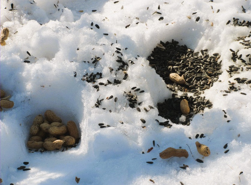 I was happy she went back to the seed stash in the snow, thus giving me time to get a few shots of her.