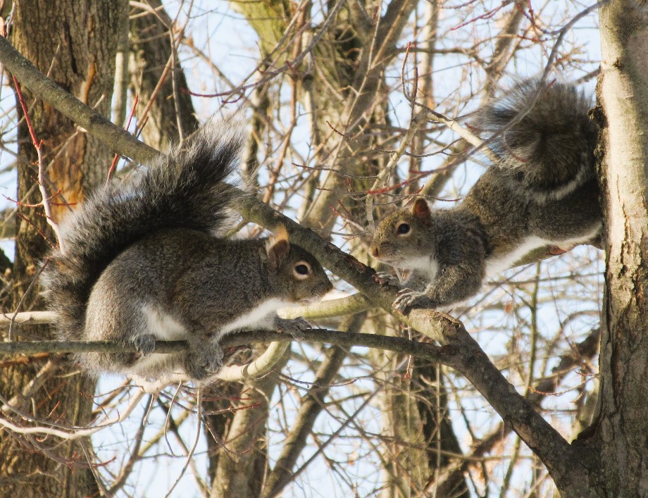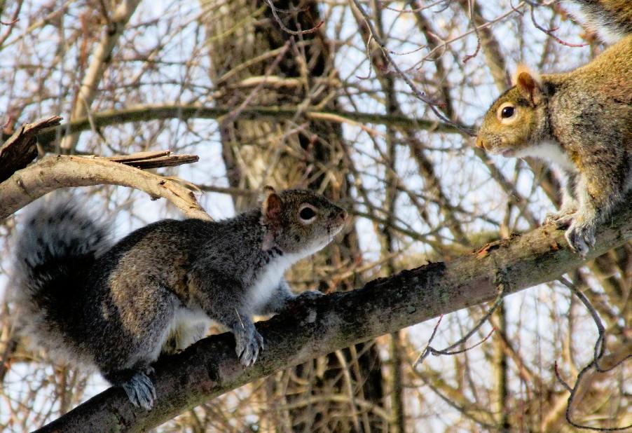 So, was this mere infatuation or are these a mated pair? It is squirrel mating season in Southeast Michigan. For a quick minute, as I peered at these two cute Eastern Gray squirrels through my camera lens, I felt like a voyeur. π Here’s another shot of these cutie pies after they inched a bit closer, seemingly oblivious to me and the shutter clicks.