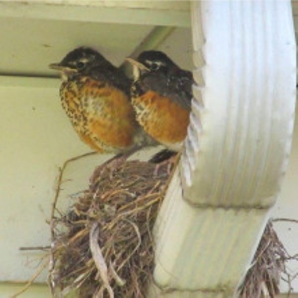 Birds on the eavestrough