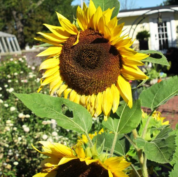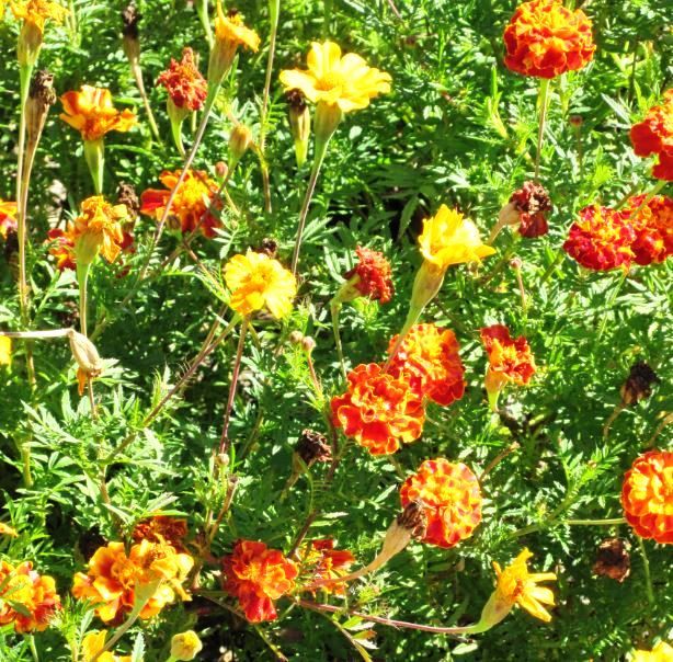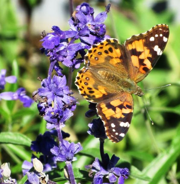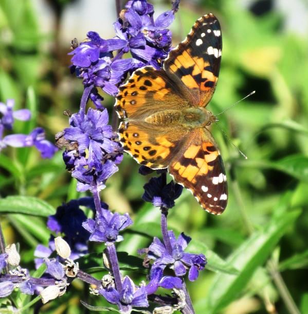 I walked the long way to the Botanical Gardens, hoping for a hummingbird to happen by. But nope, no flowers enticed them, nor the butterflies or bees either. I did see a Goldfinch nibbling on a yellow flower – I don’t know if it was a female or a male as they similarly molt that time of year.