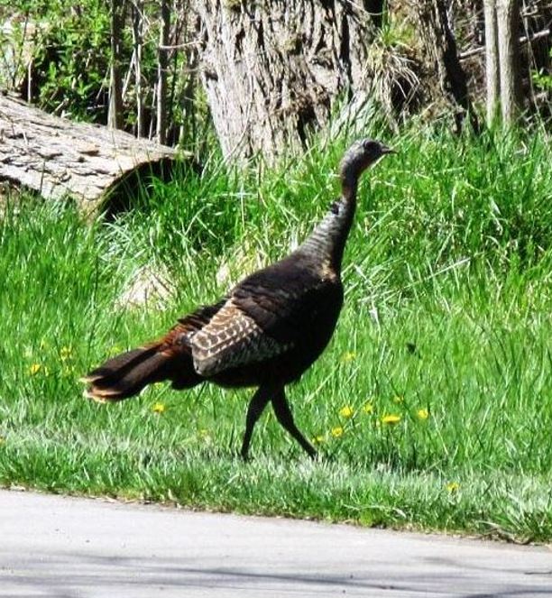 Some ducks, with a mind of their own, weren’t keen on playing “follow the leader” with another species, so they headed back to the walking path, under a big tree and close to me.