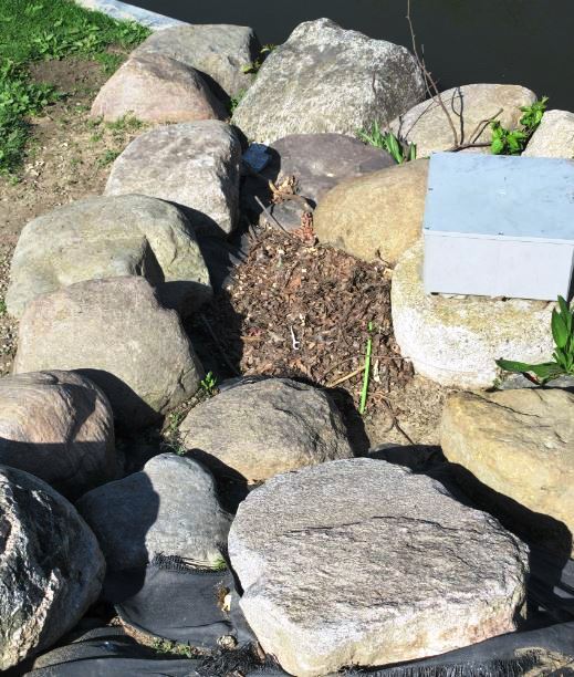 Also worrisome is the fact that geese nest along the shoreline and, although I never see their nests as they hug the shoreline, then suddenly a family of goslings emerges, so what happens to them? I spotted the first family on Monday, April 8th, much earlier than usual, but at least that family is safe as they can paddle away from this huge machine. Will they remove the nesting geese?