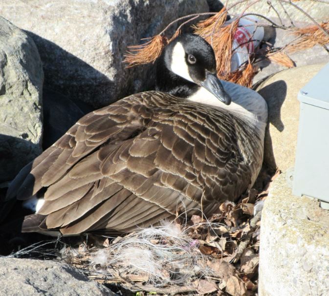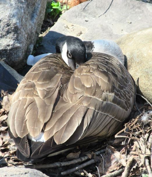 I returned again on April 22nd and got a photo of a very sleepy Mama Goose still on the nest.