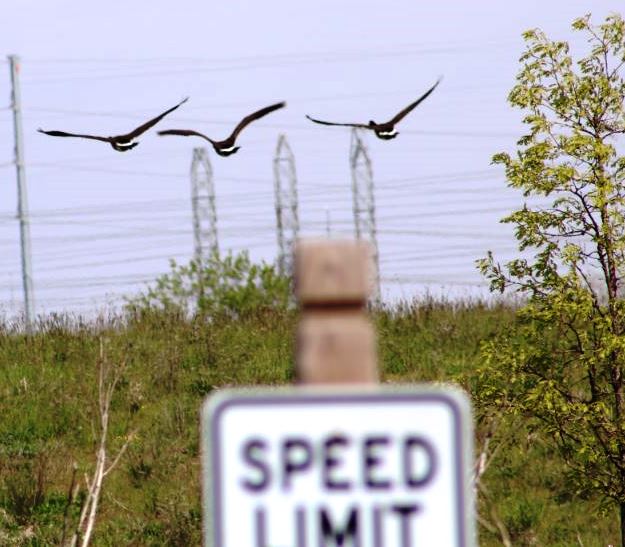 Three grown-up geese took to the skies – how’s this for in sync flying?