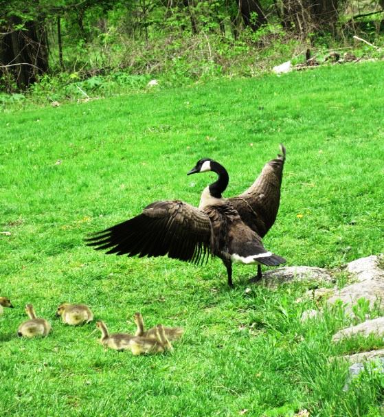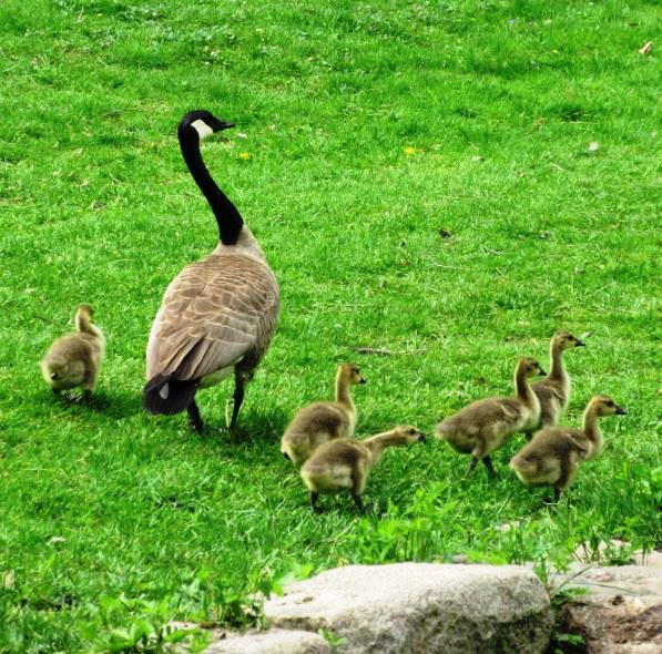 Although I cannot state that I have witnessed a thousand miracles in nature, I will say that this Spring I must have witnessed a thousand geese and goslings, so I hope you are not “goslinged out” yet because there will be a few more. In fact, this sentence will segue into my first family photo.