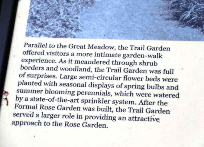 I stopped to take photos of the informational sign with a vintage pic and here I learned about the many Summer perennials watered by an early, state-of-the-art sprinkler system.