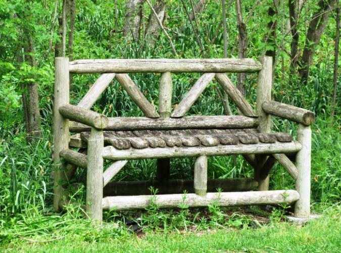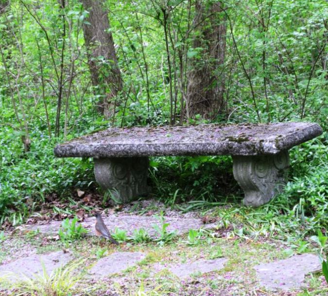 Several benches appeared along the trail and I wondered if these were once occupied by the Fords as they took a break from their hikes or walks through the Trail Garden? I have learned in my research about Fair Lane Manor that the Fords enjoyed hiking the vast and varied landscape that comprised their property.